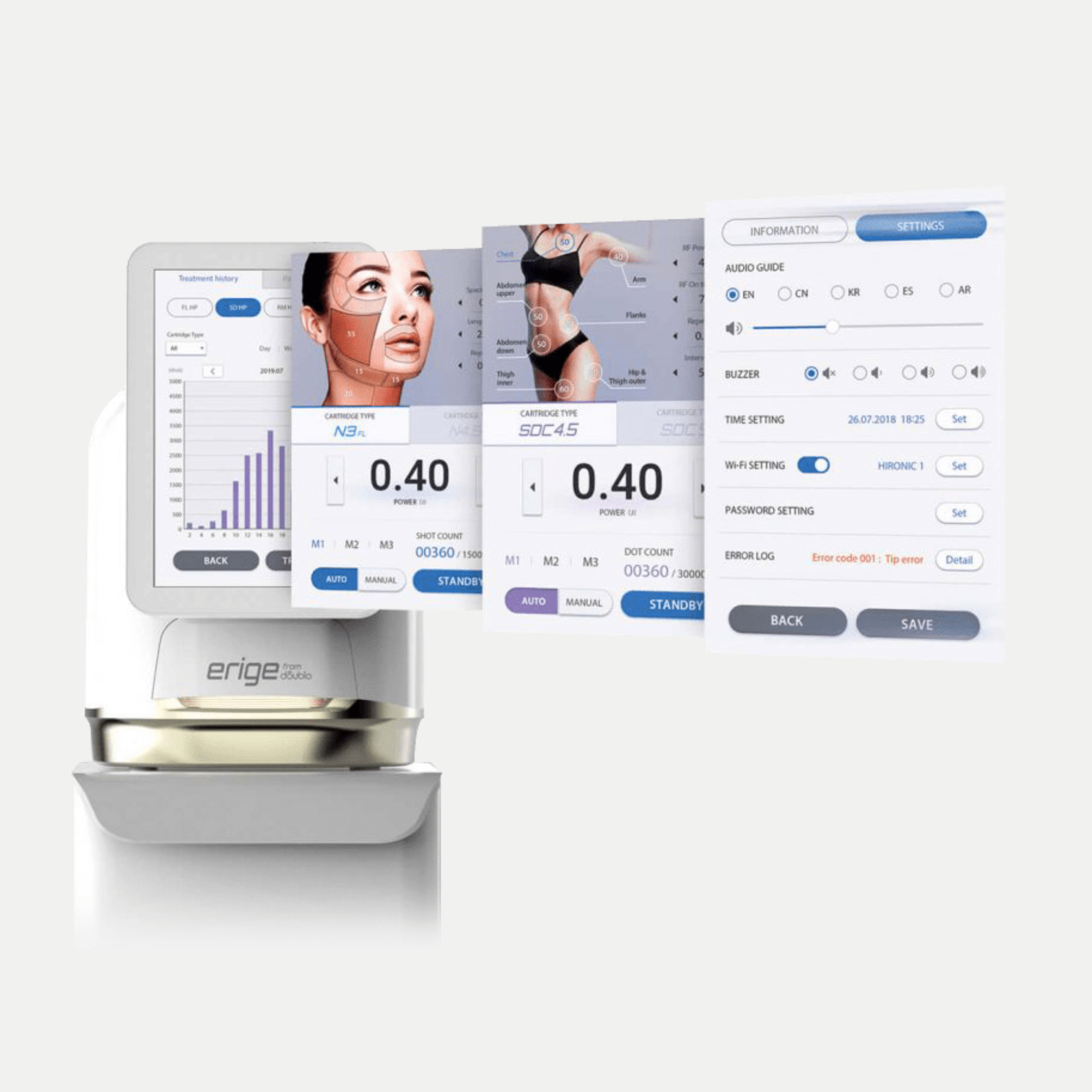 - Erige makes to feel the massage effect by moving the handpiece during the treatment